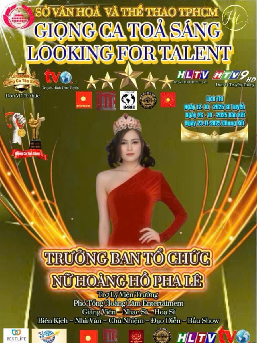 Trưởng Ban tổ chức cuộc thi "Giọng Ca Tỏa Sáng" Nữ Hoàng Hồ Pha Lê.
