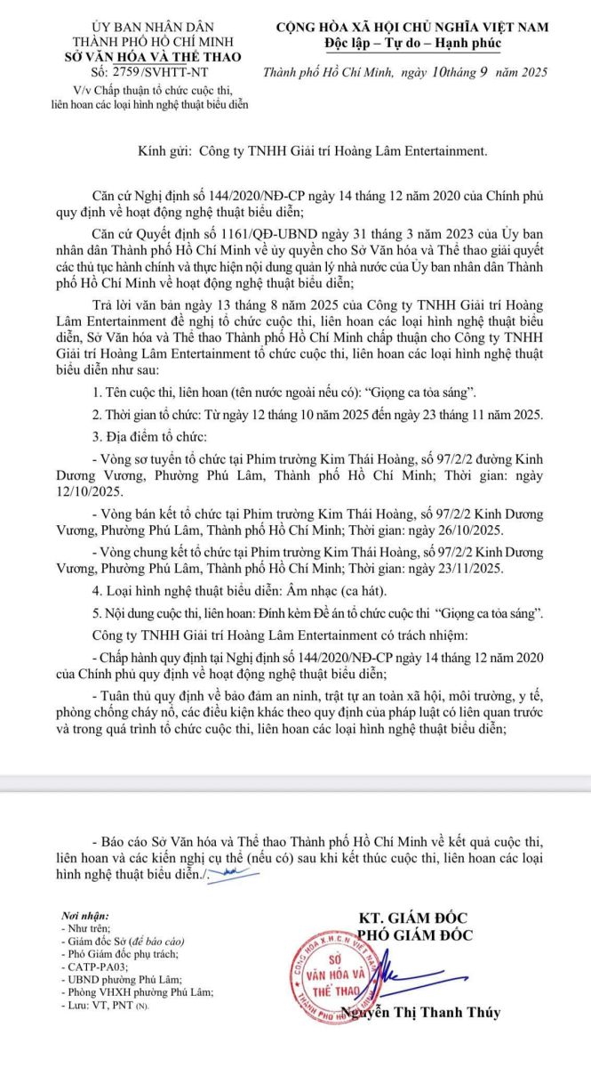 (ceotoancau.vn) Cuộc thi “Giọng Ca Tỏa Sáng” là chương trình thường niên do Hoàng Lâm Entertainment tổ chức, được cấp giấp phép bởi Sở Văn hóa và thể thao TP.HCM.