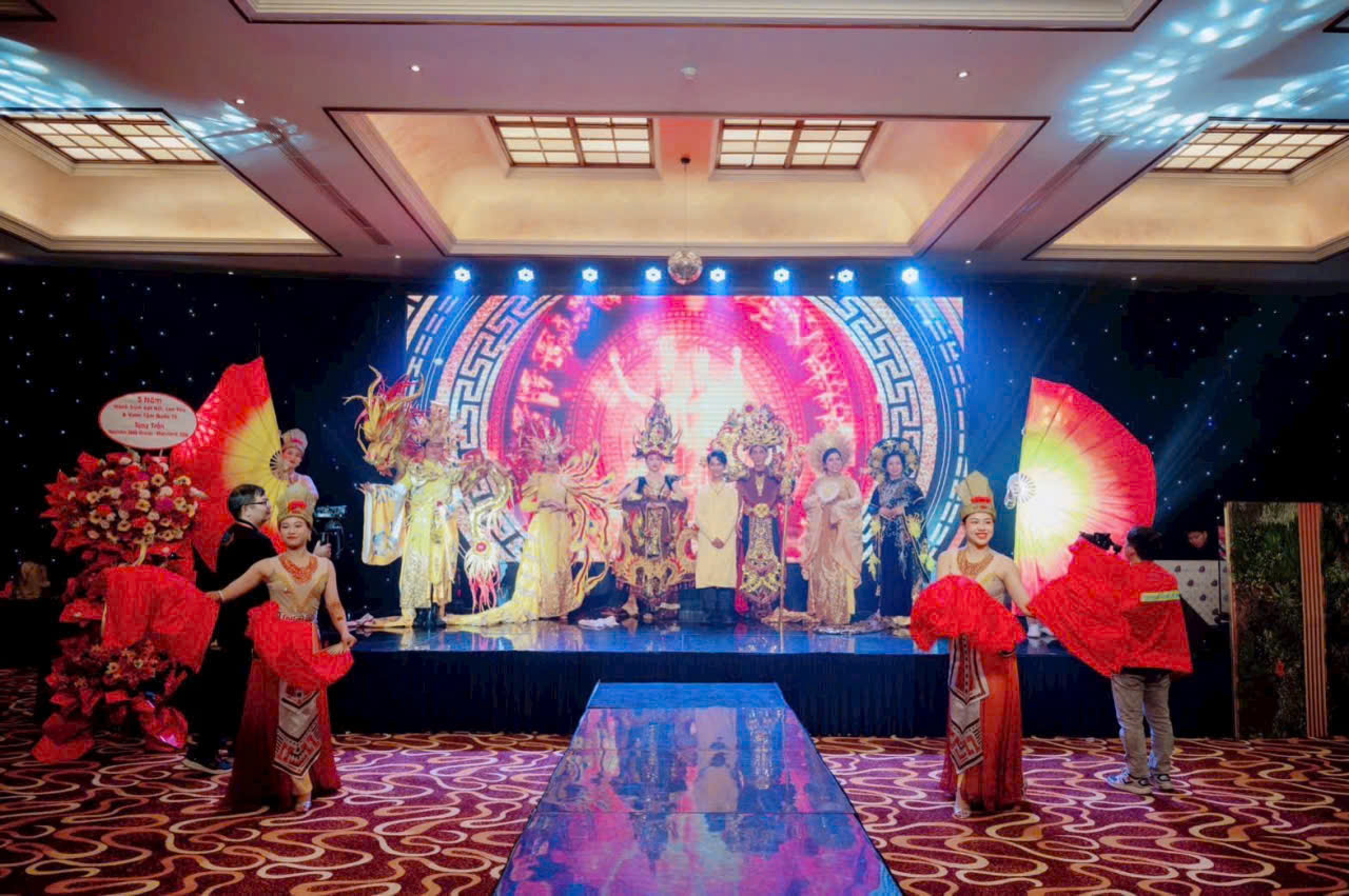 Nghệ nhân, nhà thiết kế trang phục dân tộc, ca sĩ doanh nhân Nguyễn Hoàn Vũ - giám đốc công ty TNHH Sản xuất và Dịch vụ Vũ Mẫn Quilling, Chủ tịch CLB Doanh nhân tài năng và tỏa sáng" trình diễn bộ trang phục "Hào Khí Lạc Long Quân".